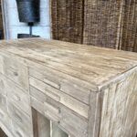 Cet ancien meuble de métier à été entièrement poncé pour lui donné un aspect plus moderne. IL est idéal comme meuble de rangement grâce à ses nombreux tiroirs et compartiments.