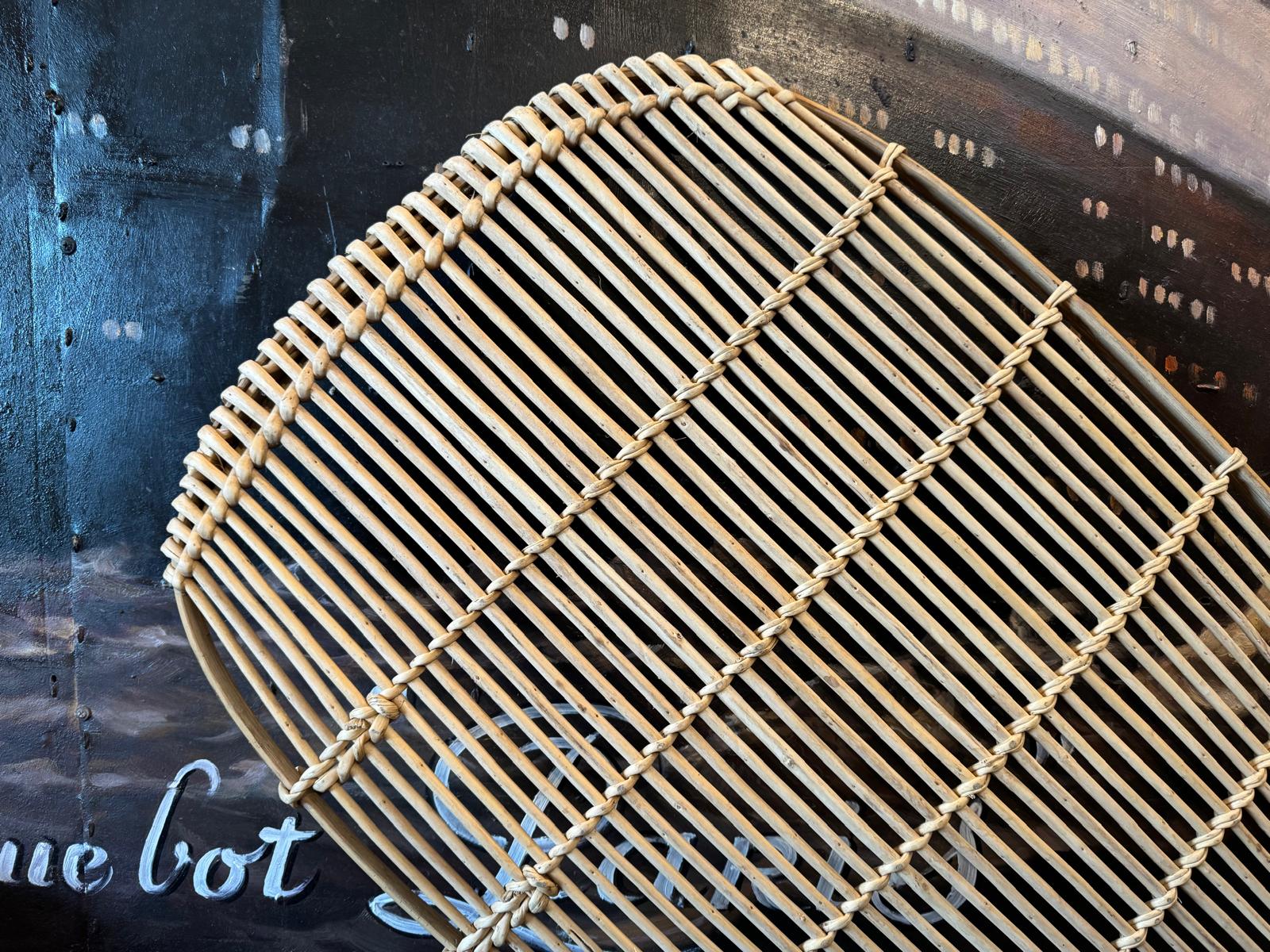 Cette jolie claie vintage en rotin servait à faire sécher les fruits cueillis (pruneaux). En excellent état, il pourra servir en décoration comme centre de table ou encore en pont de baignoire.
