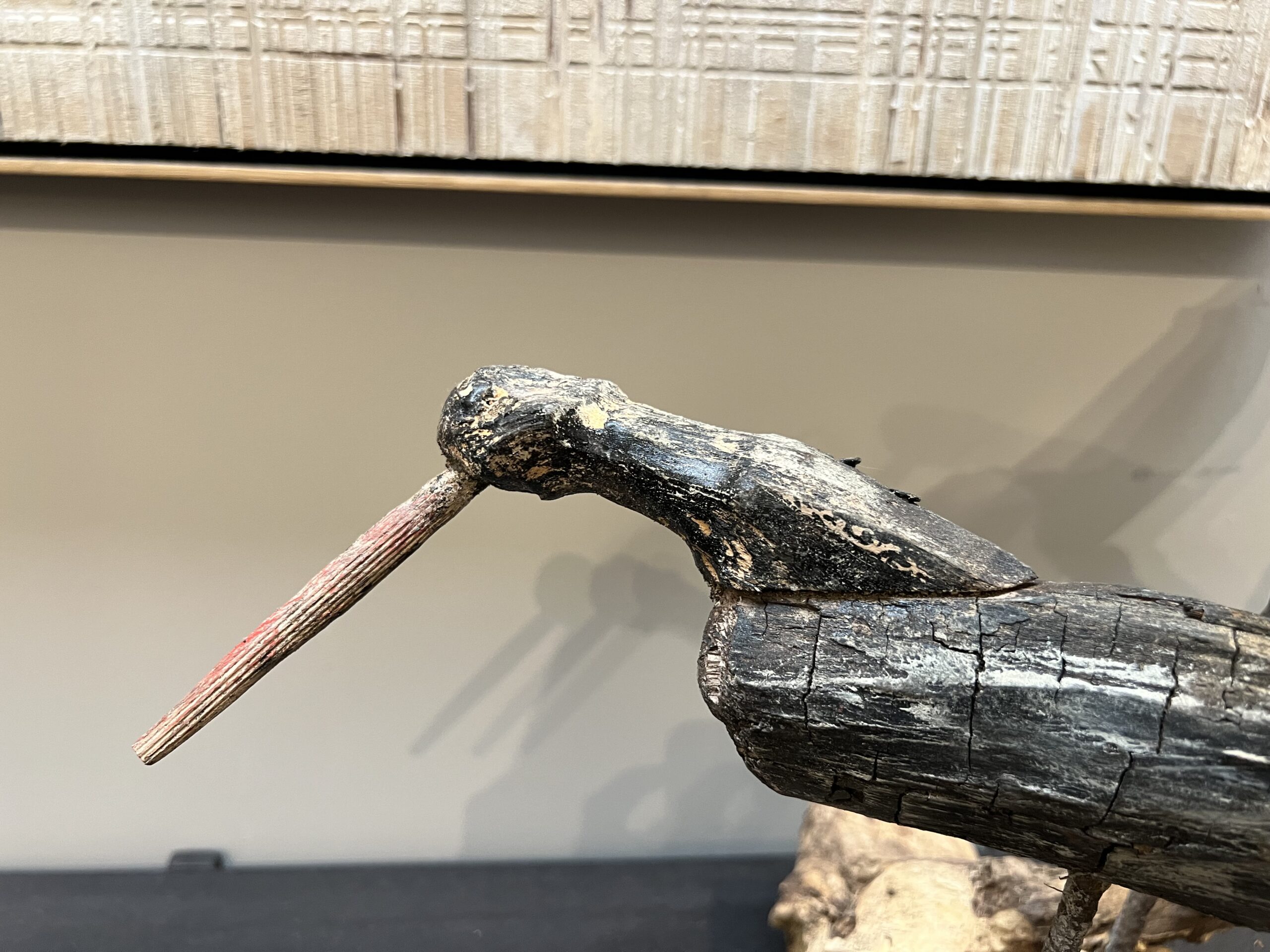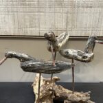 Ces 3 anciens appelants en bois viennent de la Baie de Somme. Mis sur un seul support en bois flotté, ils peuvent se tourner pour donner un autre relief et jouer avec les ombres.