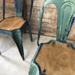Chaises industrielles de la marque belge Fibrocit. Empilables à l'infini. Date environ des années 1940.