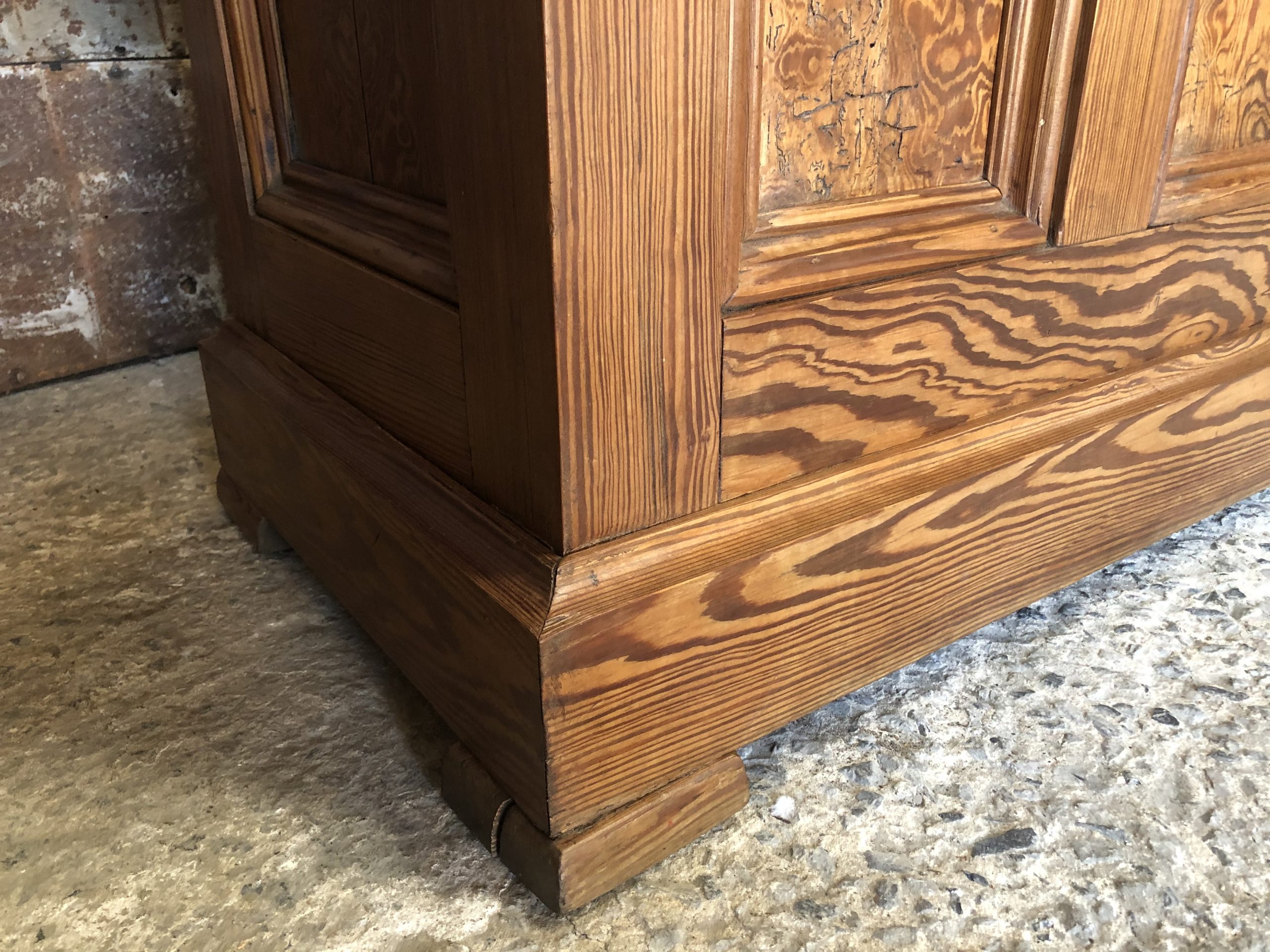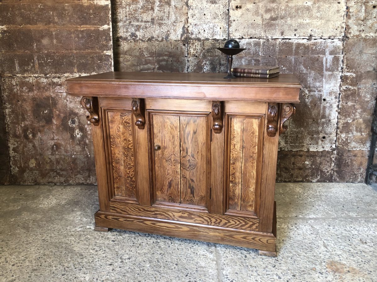 Ancien comptoir en vieux pichtpin. Date plus ou moins des années 1920. Il s'est patiné avec le temps et comporte de jolis dessins naturels du bois.