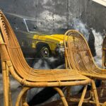 Ensemble de 4 chaises en rotin. Assise confortable. Anciennes réparations réalisées sur 2 assises (n'enlève pas la solidité de celle-ci) . un brin est cassé sur le dossier d'une des chaise mais ne se voit pas quand elle est remise correctement. Traces d'usure.