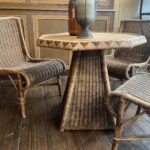 Ensemble de 4 chauffeuses et table en rotin. Date environ des année 1930 - 40 et servait dans petit hôtel français.