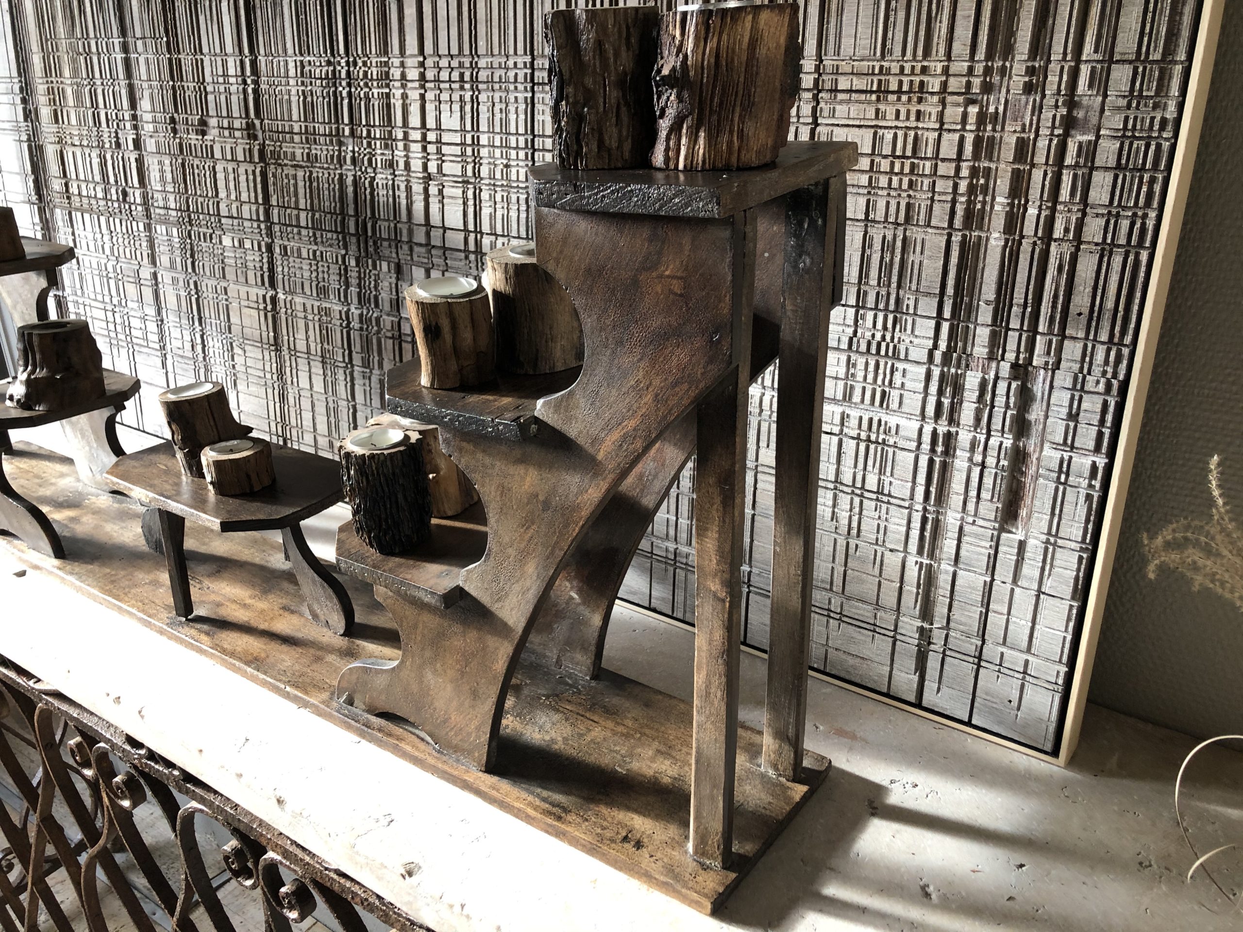 Petit escalier à plantes en bois