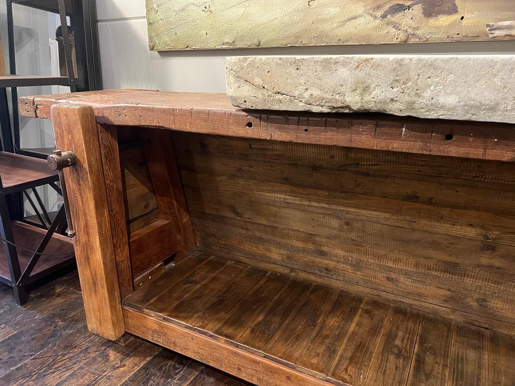 Ancien établi en bois massif, c’est une pièce incontournable pour la décoration d’intérieure.