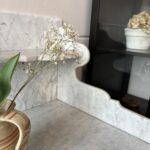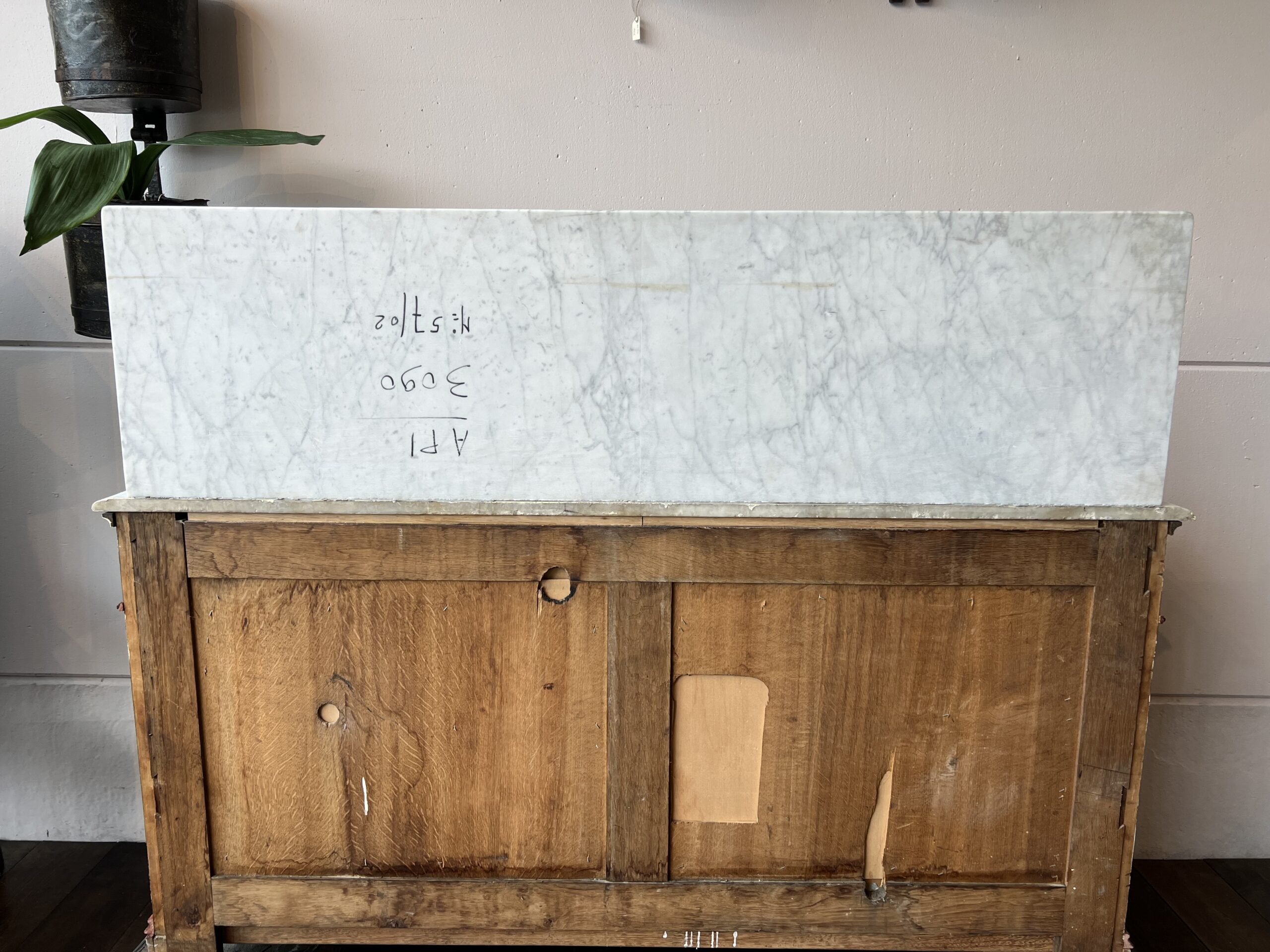 Très beau meuble rempli de caractère qui donnera un charme fou à votre salle de bain. Il est de très bonne facture, sa tablette en marbre veiné blanc mouluré est composé d'une étagère. Il est pratique grâce à ses espaces de rangement. La vasque est de la marque Villeroy & Boch. Robinet mélangeur vintage. Le meuble présente des traces d'usures. Ce meuble a été restauré par nos soins.