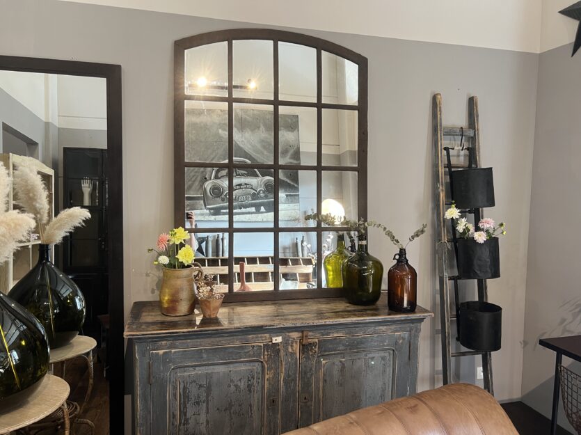 Miroir industriel réalisé avec un ancien châssis d'usine en fonte.