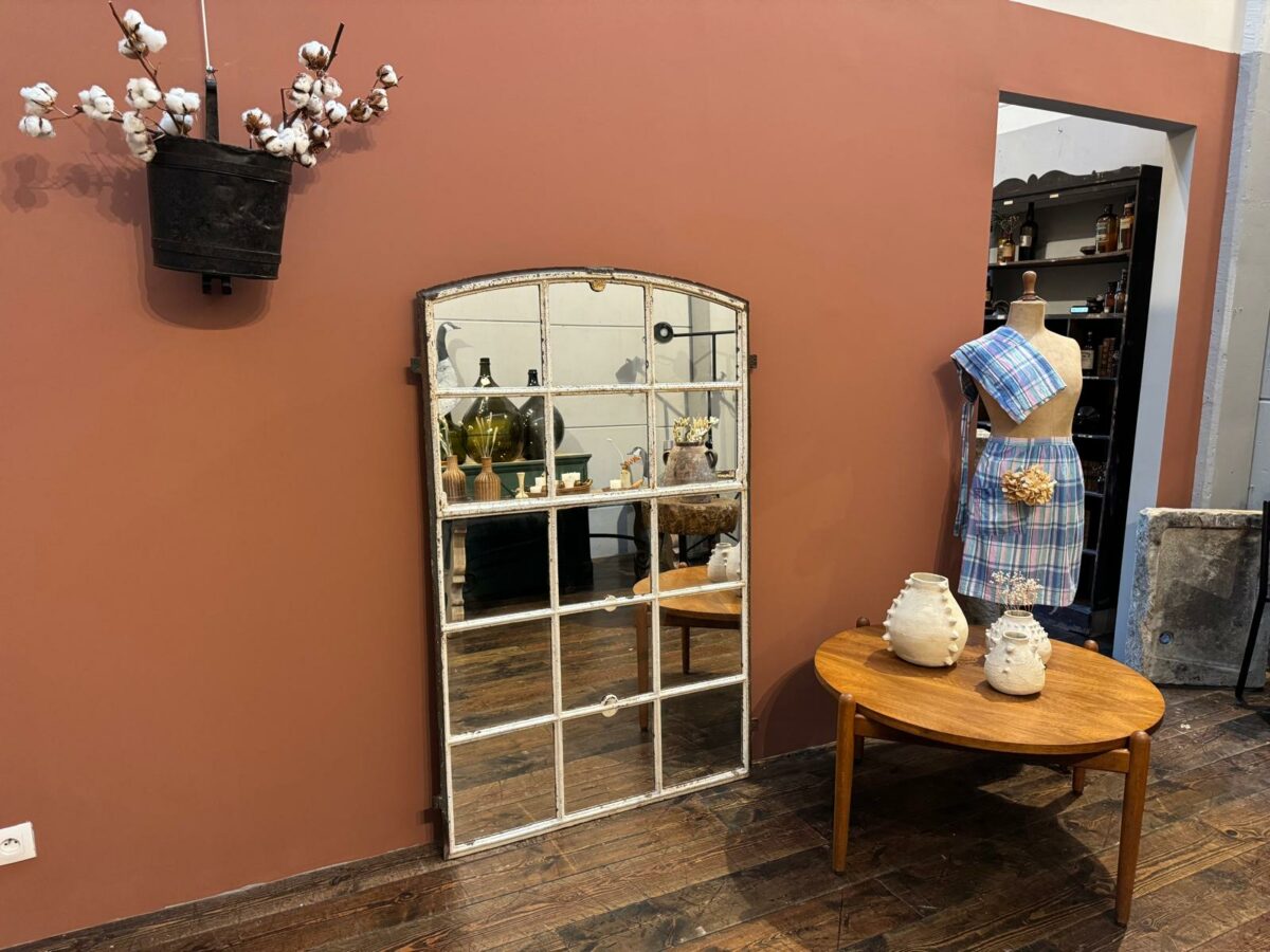 Miroir industriel patine blanche, un élément de décoration qui allie authenticité et style industriel. Avec son ancien châssis d’usine, ce miroir apporte une touche brute et chaleureuse à votre intérieur. Sa finition met en valeur les imperfections du métal, ajoutant du caractère et un charme unique à chaque pièce.