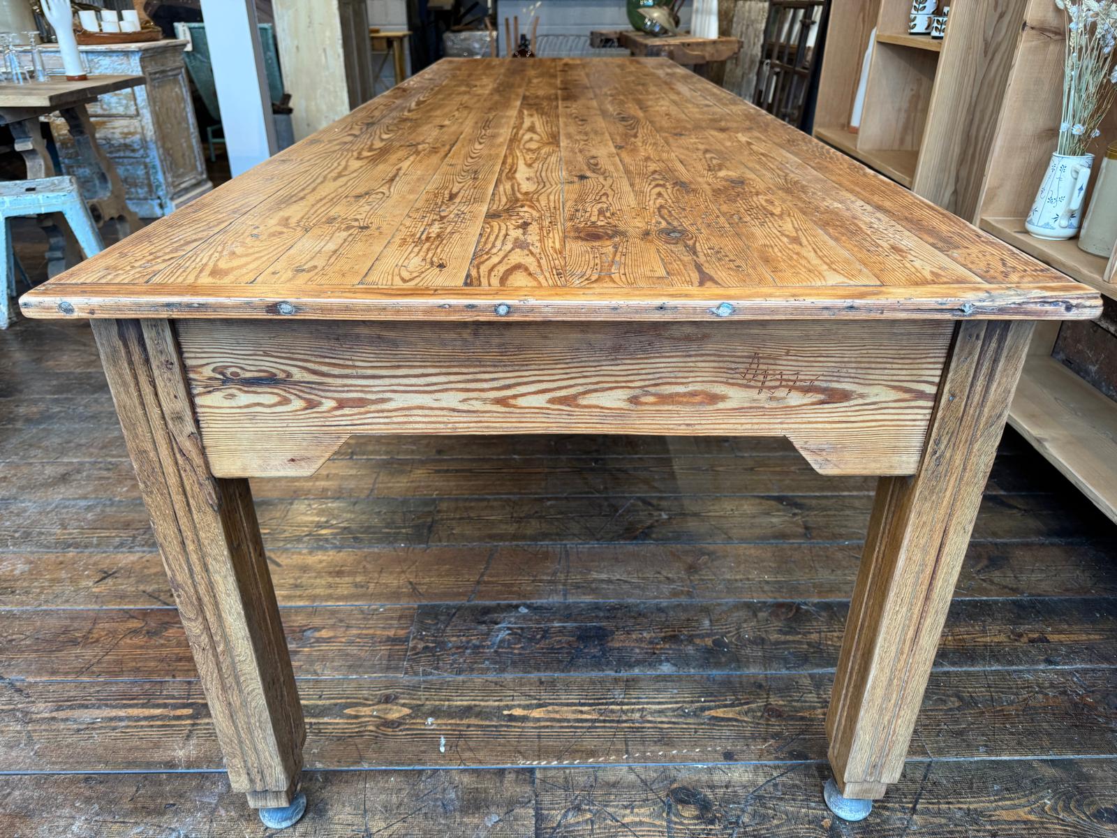 Cette grande table en bois est idéale pour rassembler 10 à 12 convives lors de vos repas. Entièrement cirée, elle offre une finition douce au toucher qui met en valeur sa jolie patine. Les jolis détails au niveau des pieds ajoutent du charme à cette grande table, parfaite pour des moments conviviaux. Créez des souvenirs inoubliables autour de cette pièce unique !