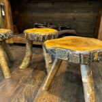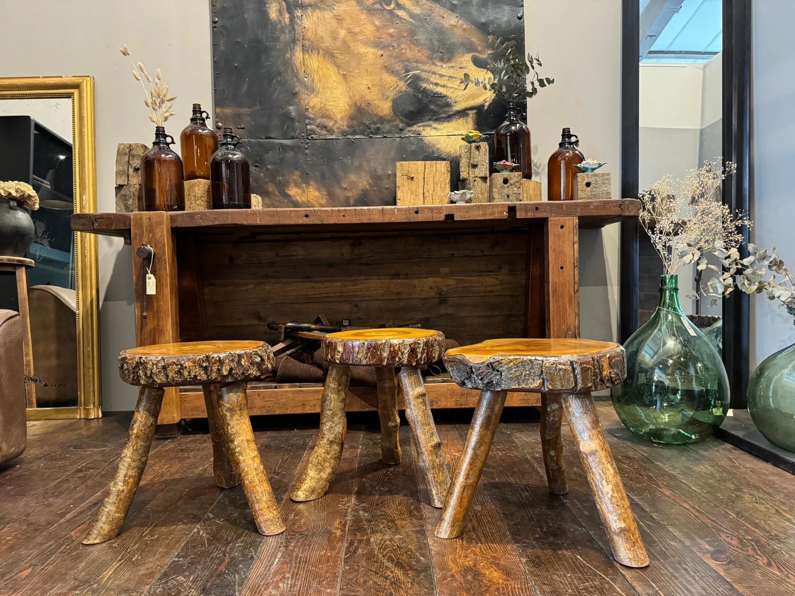 Tabourets de vacher tripode pouvant servir de petite table d'appoint ou table de chevet.