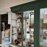 Cette vitrine de pharmacie, datant des années 30-40, est un meuble de métier avec beaucoup de cachet. Entièrement aéro-gommée et repeinte dans un élégant vert sapin de chez Farrow & Ball, elle se compose de deux parties distinctes alliant praticité et esthétique. La partie supérieure, vitrée, est dotée d'étagères en verre ornées de miroirs sur la face arrière, créant ainsi un effet de réflexion qui sublime vos objets de décoration, collections ou souvenirs. La partie inférieure, entièrement fermée, offre un espace de rangement idéal pour dissimuler les objets que vous ne souhaitez pas exposer. Cette vitrine de pharmacie ne se limite pas à être un meuble fonctionnel ; elle constitue également une pièce unique qui apportera caractère et charme à votre intérieur.